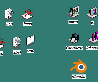 Desktop icons can either open applications or open documents. For documents, bitmaps can be automatically selected by the MIME type of the document (detected using libmagic). Icons can be dragged around, double clicked, etc.